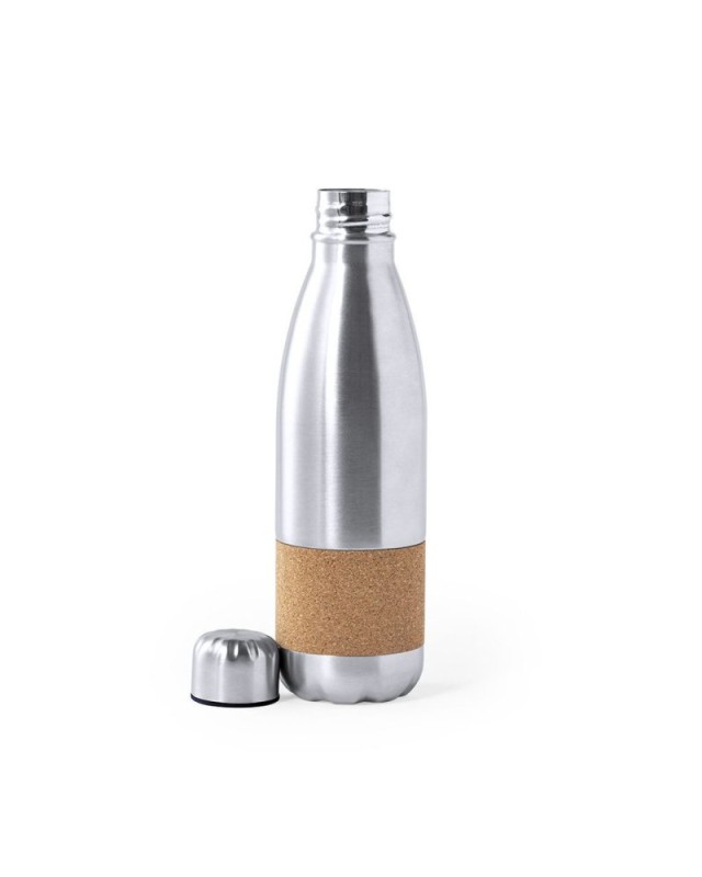 Borraccia della linea Natura, prodotta con una combinazione di acciaio inossidabile opaco e sughero. Capacità di 750ml, con tappo di sicurezza. Confezionata in attraente scatola eco-design. - Diametro: 7.4 cm - Peso: 185 gr