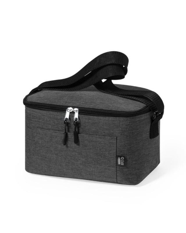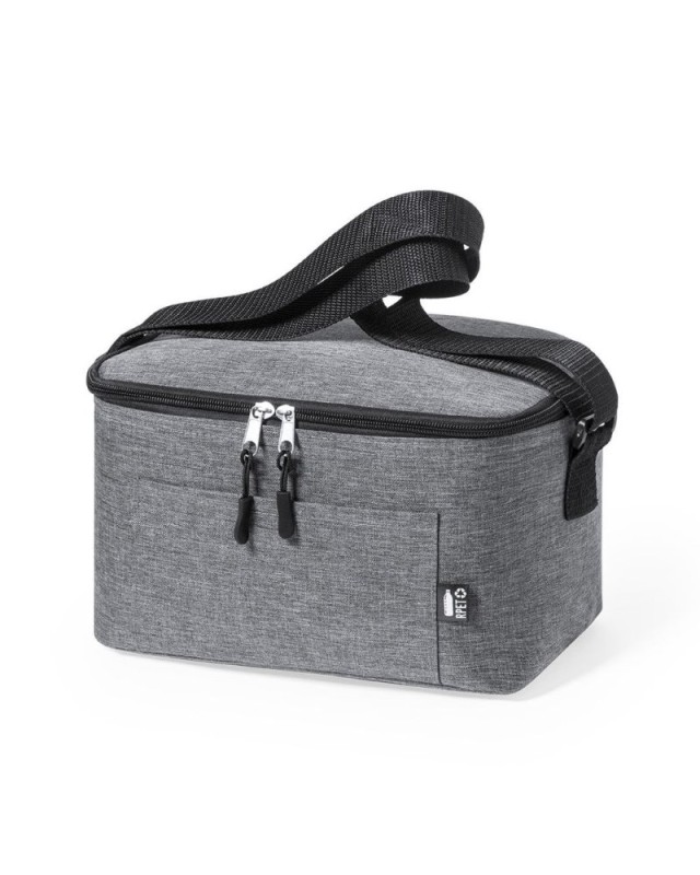 Borsa termica della linea natura in resistente poliestere 600D RPET effetto melange, realizzato con plastica riciclata per promuovere il riutilizzo dei rifiuti plastici e contribuire alla sostenibilità del pianeta. Dettagli neri e base rinforzata. Scomparto principale con chiusura a zip e interno in alluminio. Include tasca esterna e tracolla regolabile, con badge RPET sulletichetta esterna. - Lunghezza: 25 cm - Larghezza: 15 cm - Peso: 144 gr