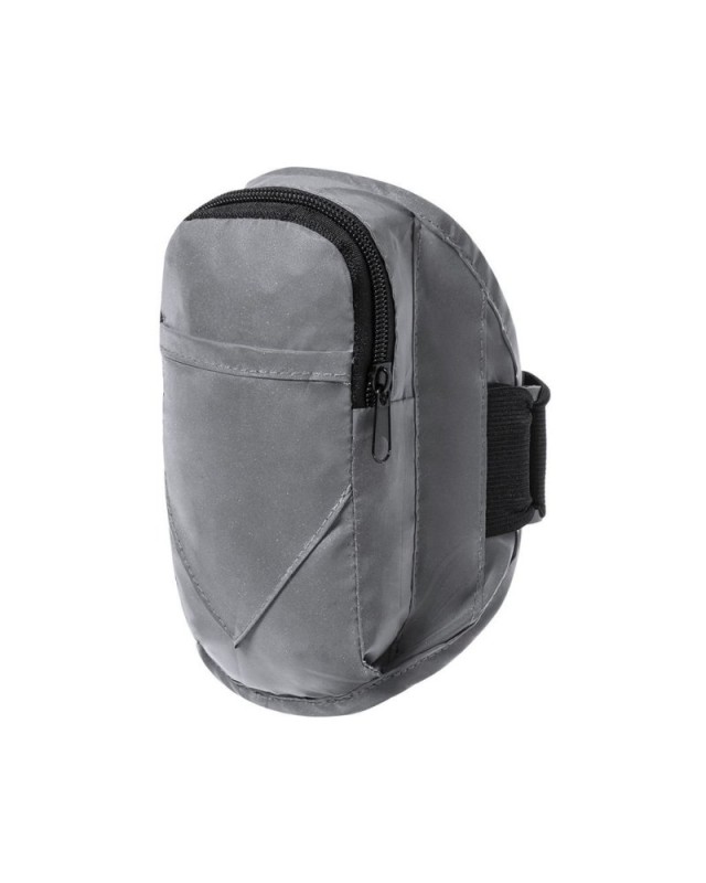 Bracciale sportivo in poliestere 210T, realizzato con un tessuto ad elevata capacità riflettente, grazie a milioni di pigmenti riflettenti e basato sul principio della retro-riflessione, una proprietà della visibilità notturna che consiste nella rifrazione della luce verso la fonte della luce stessa. Tasca principale con zip e tasca frontale con chiusura in velcro. Con cinturino elastico regolabile e resistente allacqua - Lunghezza: 8 cm - Larghezza: 4 cm - Peso: 50 gr