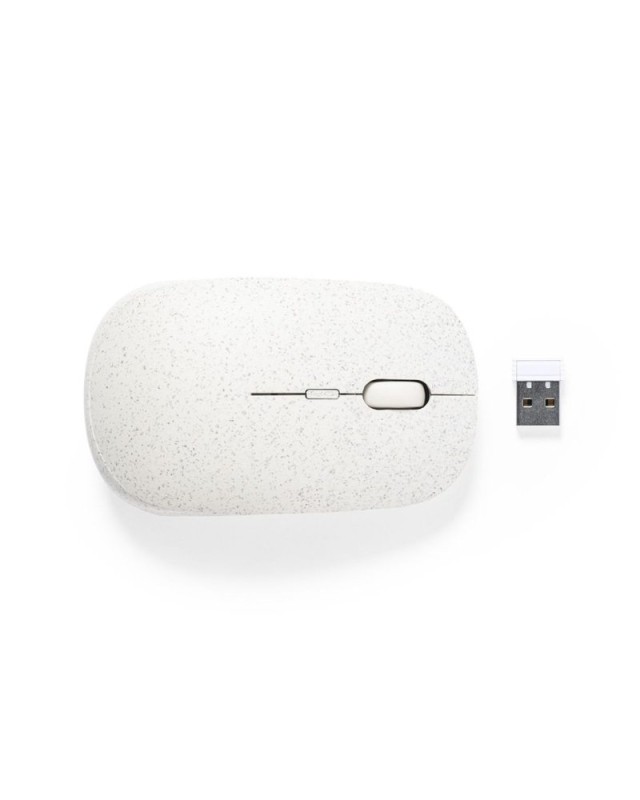 Mouse ottico wireless della linea natura e dal design ergonomico. Realizzato in fibra di grano per promuovere luso di materie prime naturali e ridurre le emissioni inquinanti. Pulsante DPI incluso. Alimentazione a batteria: 1xAA non inclusa. Confezionato in unattraente scatola di eco-design - Lunghezza: 10.4 cm - Larghezza: 6.2 cm - Peso: 56 gr