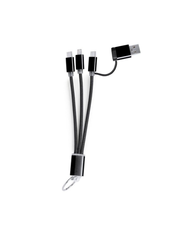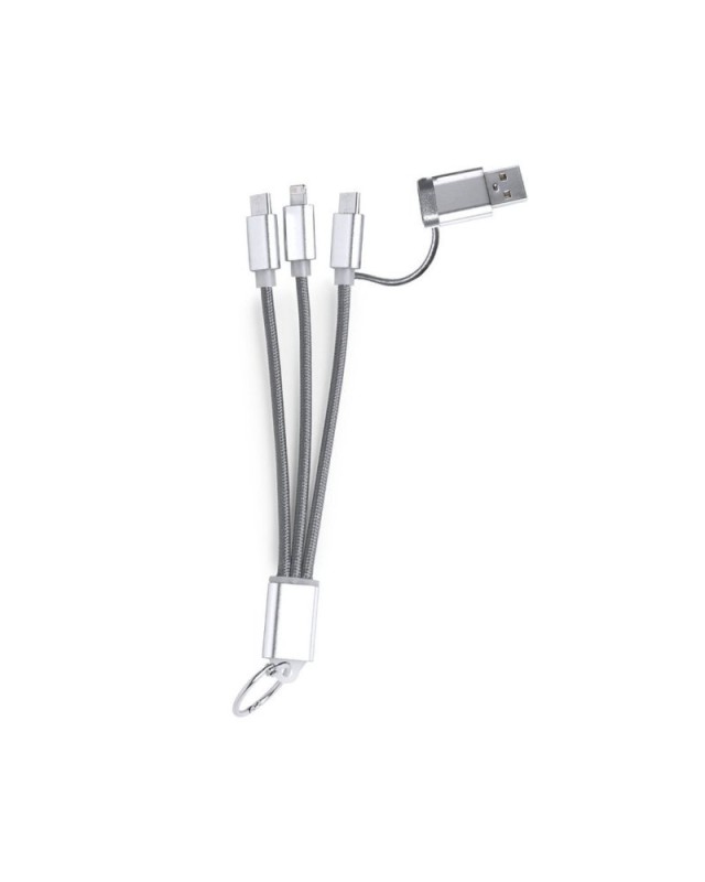 Cavo di ricarica con doppia connessione micro USB/Lightning e tipo C (ingresso e uscita). Connettori e placca in alluminio, appositamente progettati per la stampa laser. - Lunghezza: 2.2 cm - Larghezza: 0.8 cm - Peso: 22 gr