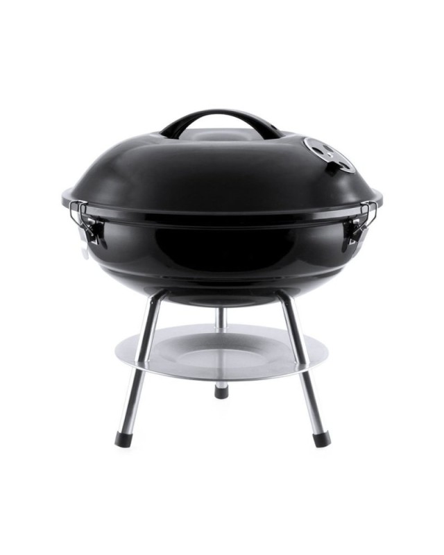 Barbecue realizzato in robusto acciaio al carbonio con finitura nera. Coperchio con comoda maniglia e fori di ventilazione, con griglia in metallo, vassoio raccogli gocce e piedini antiscivolo. Confezionato in unattraente scatola di design. - Diametro: 36 cm - Peso: 1500 gr