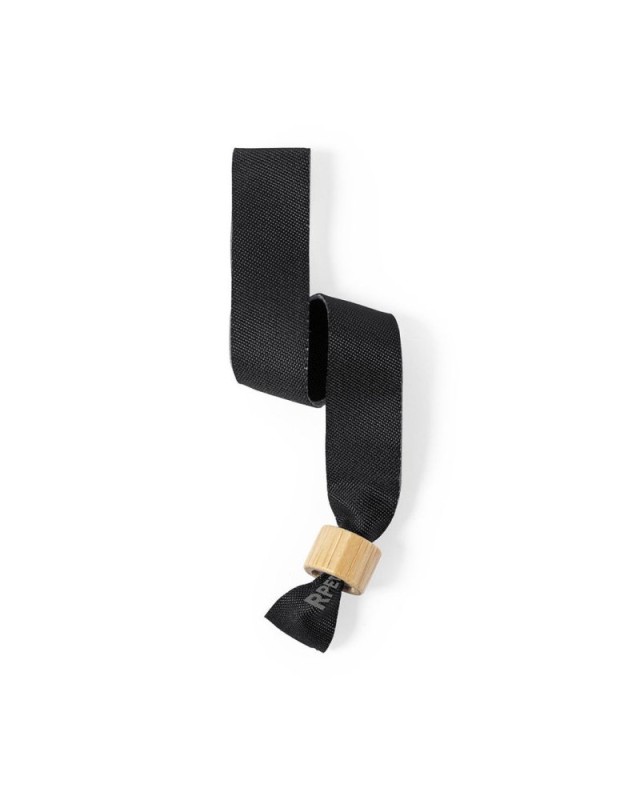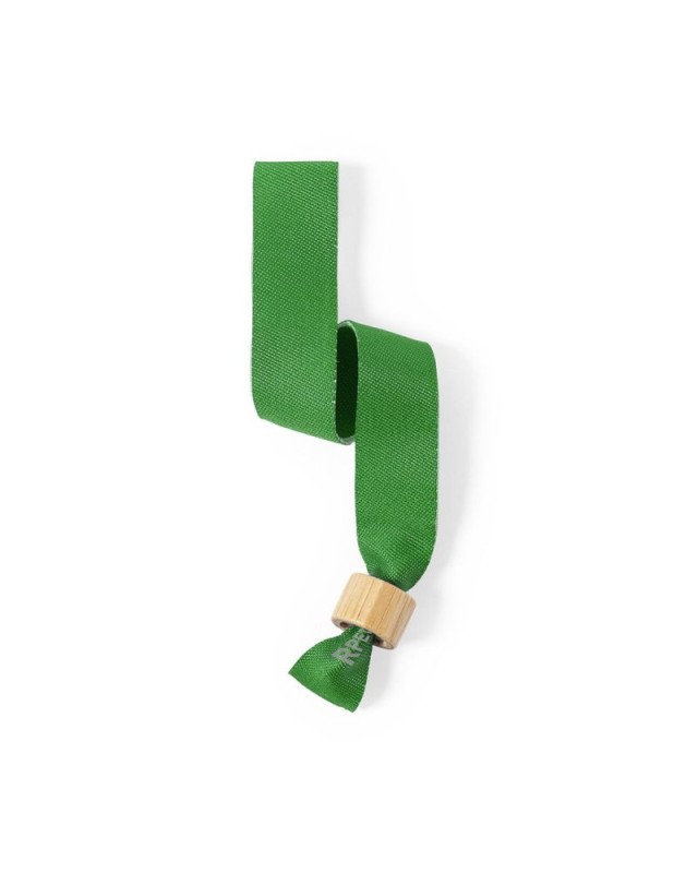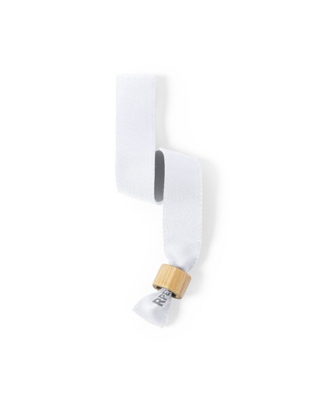 Braccialetto per eventi della linea natura. Realizzato in poliestere RPET di 160g/m2, fatto con plastica riciclata per promuovere il riutilizzo dei rifiuti plastici e contribuire alla sostenibilità del pianeta. Con chiusura in bambù e disponibile in una vasta gamma di colori, colore bianco appositamente progettato per la sublimazione. Distintivo RPET stampato sul braccialetto. - Lunghezza: 35 cm - Peso: 2 gr