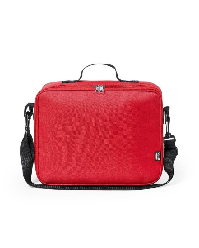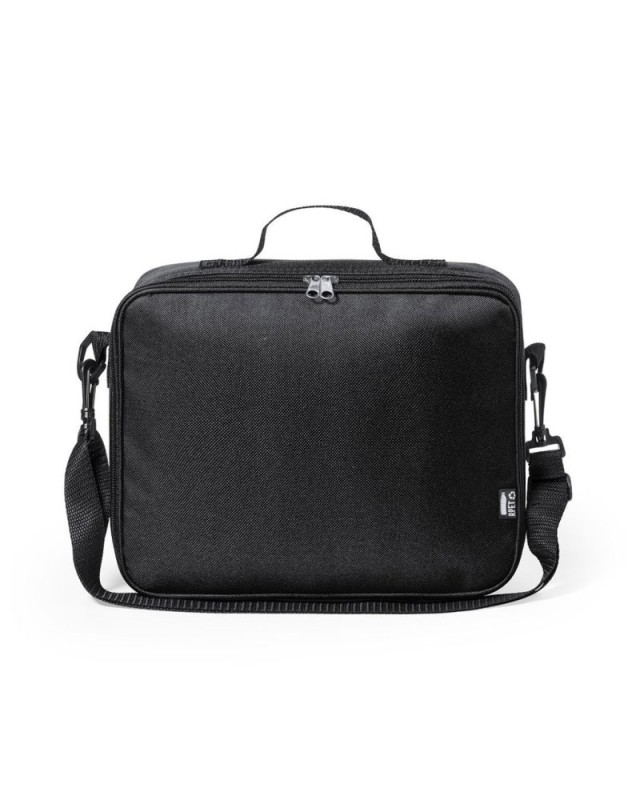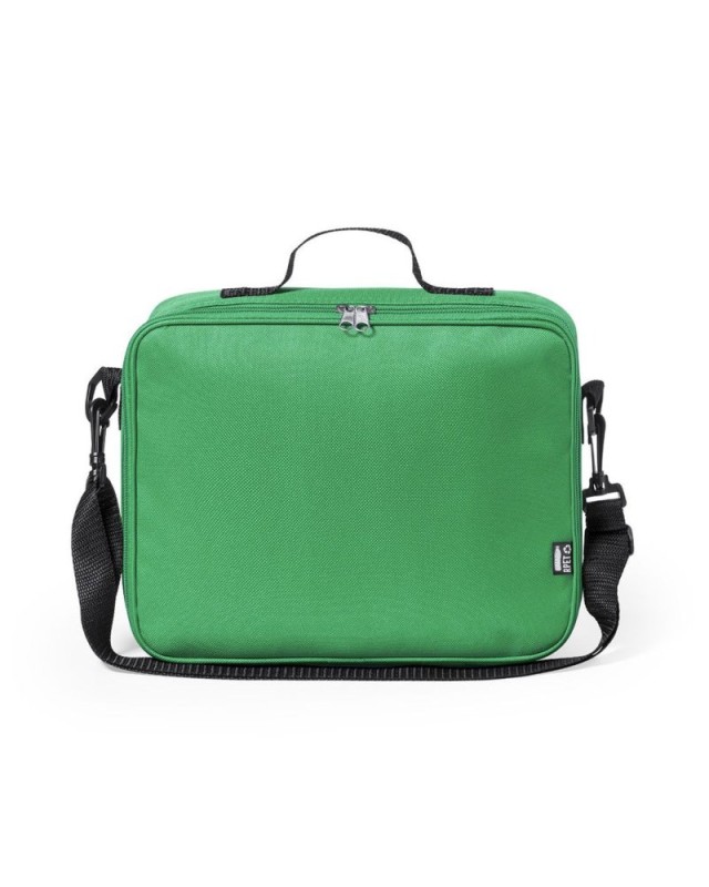 Borsa termica per bambini della linea natura, in resistente 600D RPET, realizzata in plastica riciclata per promuovere il riutilizzo dei rifiuti plastici e contribuire alla sostenibilità del pianeta. Dettagli neri e base rinforzata. Scomparto principale con chiusura a zip e interno in alluminio isotermico. Include una tracolla regolabile e una maniglia di trasporto rinforzata. Con distintivo RPET sulletichetta esterna e disponibile in una vasta gamma di colori. - Lunghezza: 26 cm - Larghezza: 8.5 cm - Peso: 172 gr