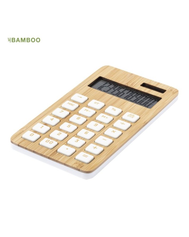 Calcolatrice a 12 cifre della linea natura in bambù. A energia solare, con alimentazione ausiliaria da batterie a bottone (incluse). Con meccanismo di spegnimento automatico e tasti in silicone morbido. Confezionata in unattraente scatola di eco-design, con manuale di istruzioni disponibile in inglese e spagnolo. - Lunghezza: 9.3 cm - Larghezza: 1.1 cm - Peso: 115 gr