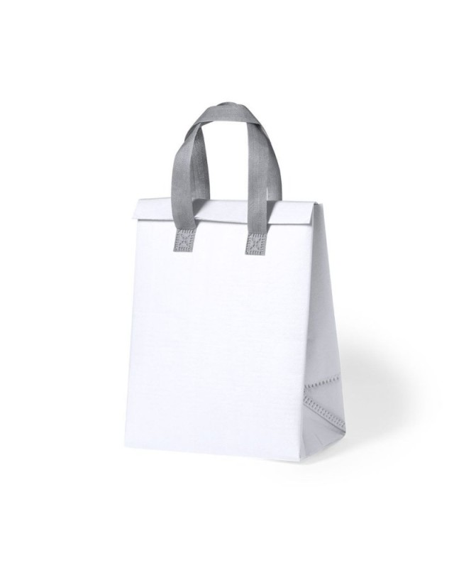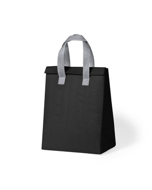 Borsa termica in TNT laminato. Scomparto principale con chiusura in velcro e interno in alluminio isotermico. Finitura termosaldata, con soffietto e maniglie rinforzate. Disponibile in una vasta gamma di colori. - Lunghezza: 23 cm - Larghezza: 14 cm - Peso: 52 gr