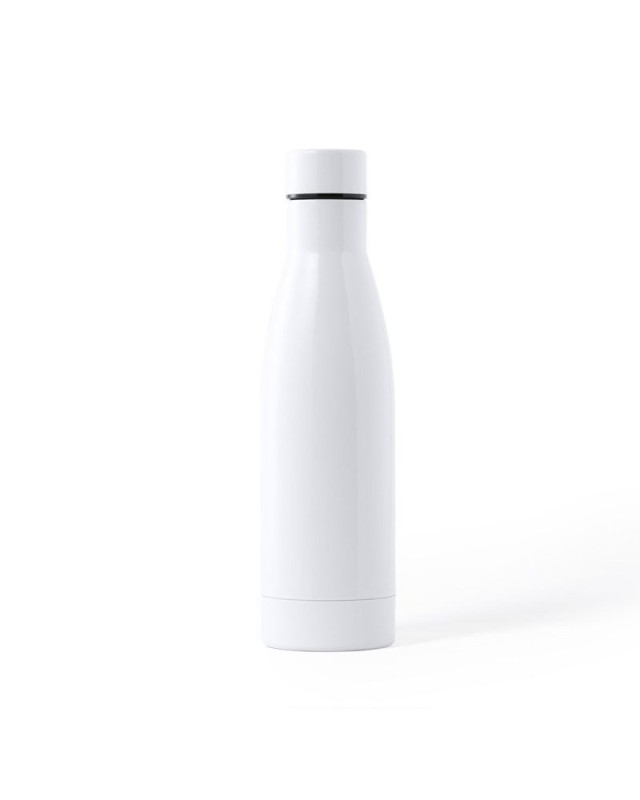 Borraccia in acciaio inossidabile della capacità di 700 ml. Rifinita in bianco liscio e lucido, appositamente progettata per la stampa in sublimazione. Con tappo di sicurezza in acciaio inossidabile, senza BPA. Confezionata in una scatola dal design accattivante. - Diametro: 7 cm - Peso: 160 gr