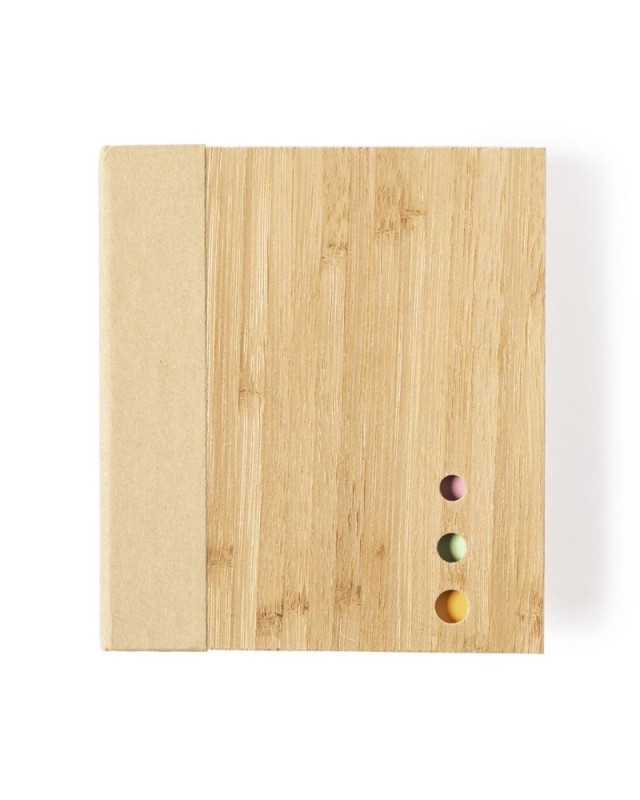 Porta post it della linea Natura con coperchio rigido in bambù. Con 115 post it kraft, 115 post it medi e 420 mini post it. - Lunghezza: 12 cm - Larghezza: 10.6 cm - Peso: 130 gr