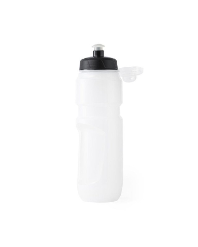Borraccia da 750 ml di capacità, in PE bianco trasparente. Prodotta in Europa, con tappo a vite, dispenser di sicurezza e tappo di chiusura trasparente. - Diametro: 7.3 cm - Peso: 90 gr