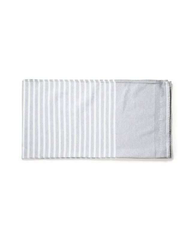 Asciugamano della linea natura e con finitura grigia. Prodotto in Europa e in una combinazione di cotone riciclato GRS e poliestere 330g/m2. Con certificazione GRS (Global Recycled Standard) che certifica lorigine riciclata del materiale utilizzato nella fabbricazione del prodotto. Dimensioni 150 x 80 cm. - Lunghezza: 150 cm - Peso: 400 gr