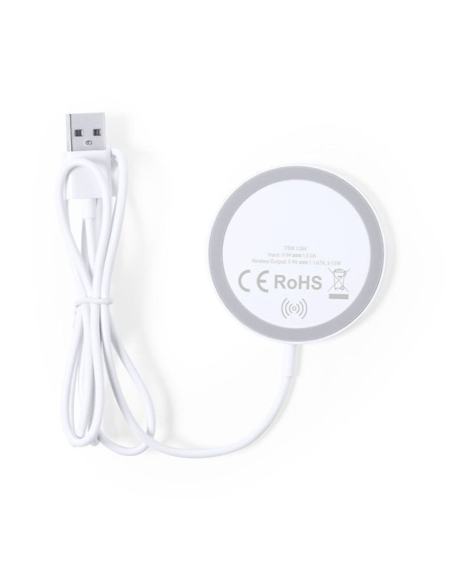 Caricatore magnetico wireless con 15W di ricarica.Cavo da 1m con connessione USB. Accessorio in metallo con adesivo 3M, extra forte e senza residui quando si stacca dal dispositivo, che permette luso della funzione magnetica del caricatore su qualsiasi dispositivo mobile. Compatibile con i telefoni dotati di tecnologia di ricarica wireless. Grande area di stampa a dispsizione. Confezionato in una scatola dal design accattivante. Manuale distruzioni disponibile in inglese e spagnolo - Diametro: 5.7 cm - Peso: 40 gr