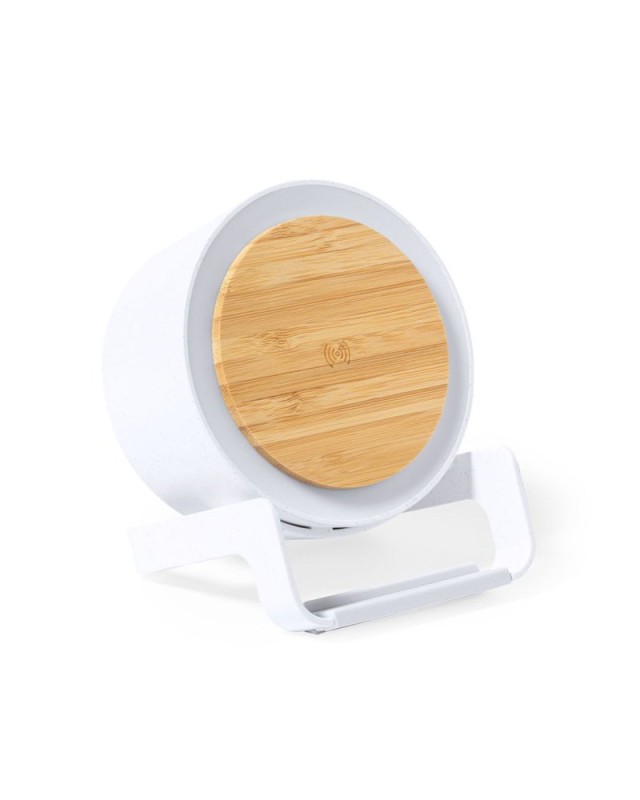 Lampada multifunzione Limited Edition con funzione di altoparlante, caricatore wireless e supporto per dispositivi mobili. Un design moderno e sostenibile realizzato in bambù e involucro in resistente ABS e fibra di grano, per promuovere lutilizzo di materie prime naturali e ridurre le emissioni inquinanti. Include una funzione di caricabatterie wireless da 10W e una lampada a 12 LED, con intensità luminosa regolabile. Compatibile con i dispositivi mobili a ricarica wireless, include un cavo di ricarica USB C da 100 cm. Altoparlante Bluetooth con potenza di 3W. Manuale di istruzioni disponibile in inglese e spagnolo. Dalla perfetta combinazione di esclusività e design nasce Limited Edition Experience, una speciale collezione di idee promozionali in edizione limitata. Un nuovo concetto, ispirato alla fusione di articoli di prima qualità con le tendenze più recenti e innovative, composta da una selezione limitata di pezzi, trasformando così un regalo in un’esperienza unica e indimenticabile. Custodia di presentazione esclusiva Limited Edition Experience, design protetto da diritti di proprietà industriale. Include una scheda di presentazione di Limited Edition Experience su cartone riciclato. - Lunghezza: 11 cm - Larghezza: 11.5 cm - Peso: 316 gr