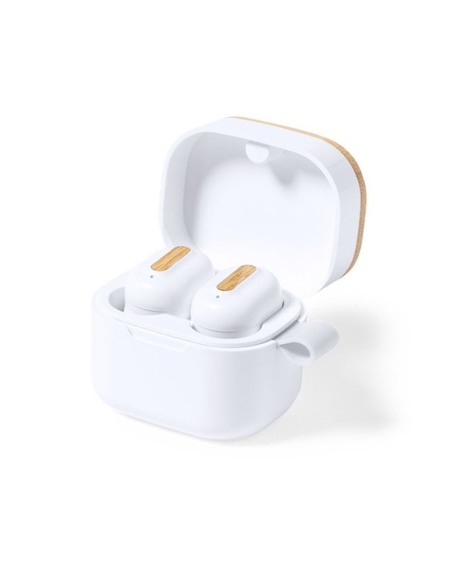 Cuffie wireless Limited Edition. Un modello innovativo che combina design, funzionalità e sostenibilità. In elegante finitura bianca in abbinamento a dettagli in bambù naturale e presentato in una custodia che funge da caricatore, anchessa bianca, con unelegante rivestimento in bambù. Le sue dimensioni consentono un utilizzo confortevole per ore. Design ergonomico, con pulsante di controllo a sfioramento integrato nellauricolare, base di ricarica coordinata e indicatore luminoso a LED. Connessione Bluetooth 5.0. Funzione vivavoce e ricaricabile con il cavo USB C incluso. Manuale di istruzioni in inglese e spagnolo incluso. Dalla perfetta combinazione di esclusività e design nasce Limited Edition Experience, una speciale collezione di idee promozionali in edizione limitata. Un nuovo concetto, ispirato alla fusione di articoli di prima qualità con le tendenze più recenti e innovative, composta da una selezione limitata di pezzi, trasformando così un regalo in un’esperienza unica e indimenticabile. Custodia di presentazione esclusiva Limited Edition Experience, design protetto da diritti di proprietà industriale. Include una scheda di presentazione di Limited Edition Experience su cartone riciclato. - Lunghezza: 4.1 cm - Larghezza: 3.3 cm - Peso: 33 gr