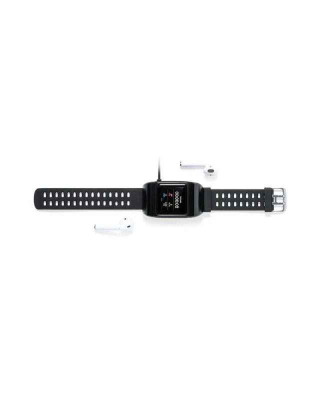 Smartwatch multigadget con auricolari integrati nella cassa. Con connessione Bluetooth e design casual, cinturino in TPU e schermo touch screen TFT da 1,30 pollici, è il gadget perfetto per ogni tipo di sport, tempo libero e attività quotidiana.Resistente agli spruzzi dacqua, con APP disponibile per iOS e Android. Ricaricabile via USB (cavo incluso) e presentato in una scatola dal design accattivante. Manuale di istruzioni disponibile in spagnolo e inglese. - Lunghezza: 27 cm - Larghezza: 3 cm - Peso: 86 gr
