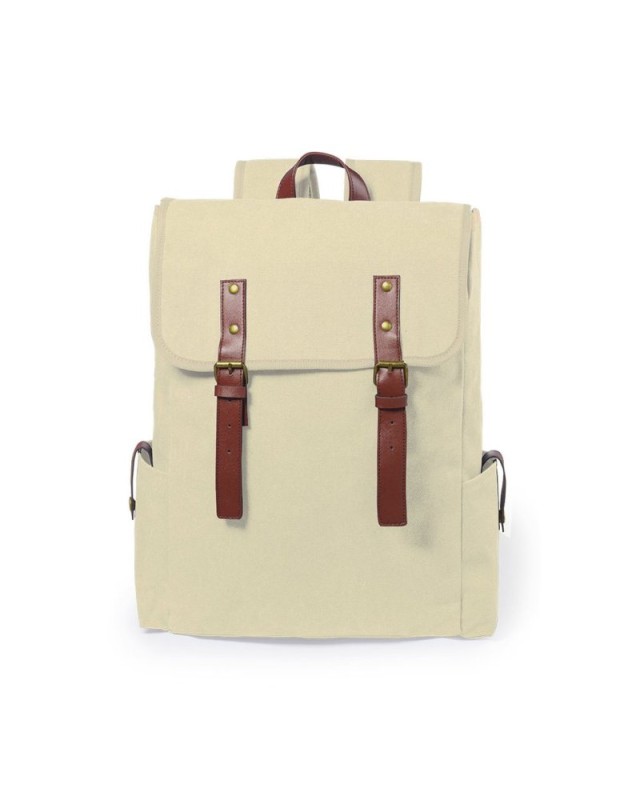 Zaino dal design senza tempo, realizzato in tela resistente da 480 g/m2 , con nastri di chiusura e maniglia di trasporto in pelle PU. Interno imbottito con scomparti individuali per tablet fino a 10 pollici e laptop fino a 15 pollici. Tasche laterali funzionali allesterno, schienale imbottito e spallacci regolabili e imbottiti. - Lunghezza: 32 cm - Larghezza: 14 cm - Peso: 660 gr