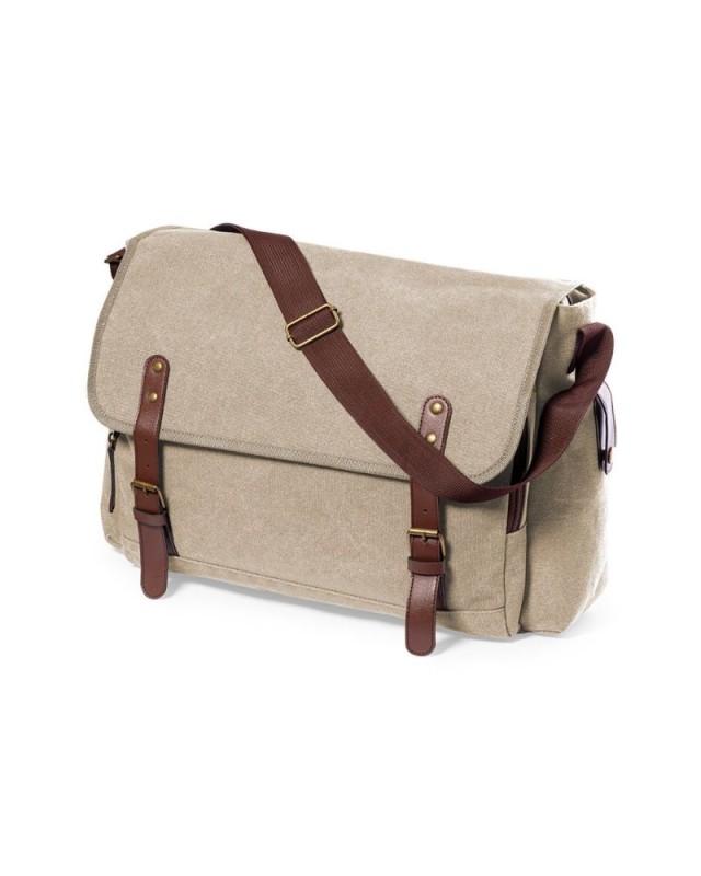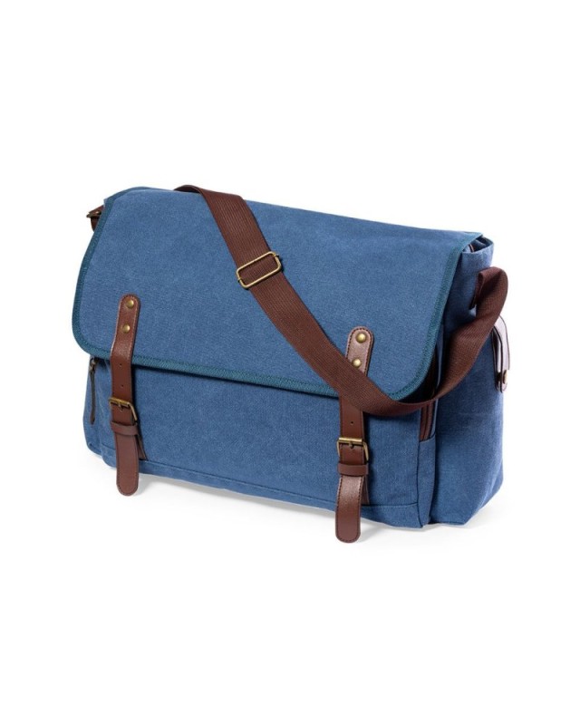 Borsa a tracolla dal design intramontabile, realizzata in resistente tela da 480 g/m2, con cinte di chiusura in similpelle e pratica tracolla regolabile. Interno imbottito con scomparti separati per tablet fino a 10 e laptop fino a 15. Include pratiche tasche laterali esterne. - Lunghezza: 40 cm - Larghezza: 12 cm - Peso: 660 gr