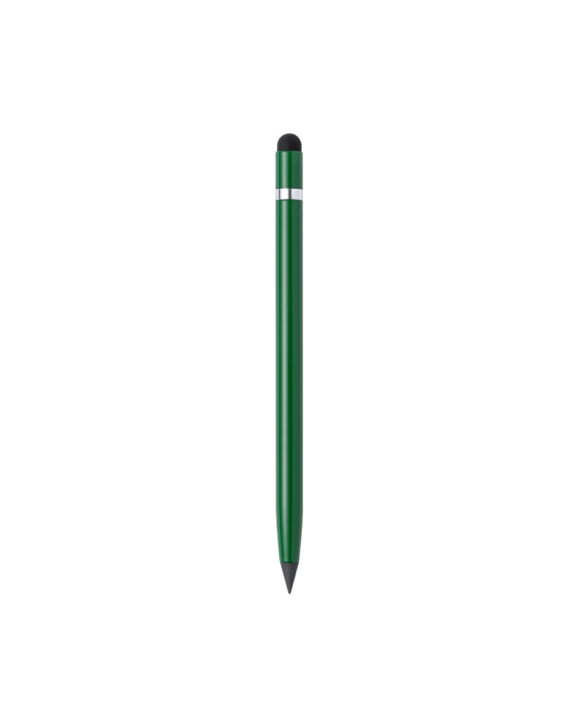 Matita eterna con touch, realizzata in resistente alluminio con finitura metallica e anello cromato. Riutilizzabile e con scrittura infinita, per utilizzare sempre la stessa matita e non produrre rifiuti. Include una gomma allinterno della matita ed è disponibile in unampia gamma di colori. - Diametro: 0.9 cm - Peso: 15 gr