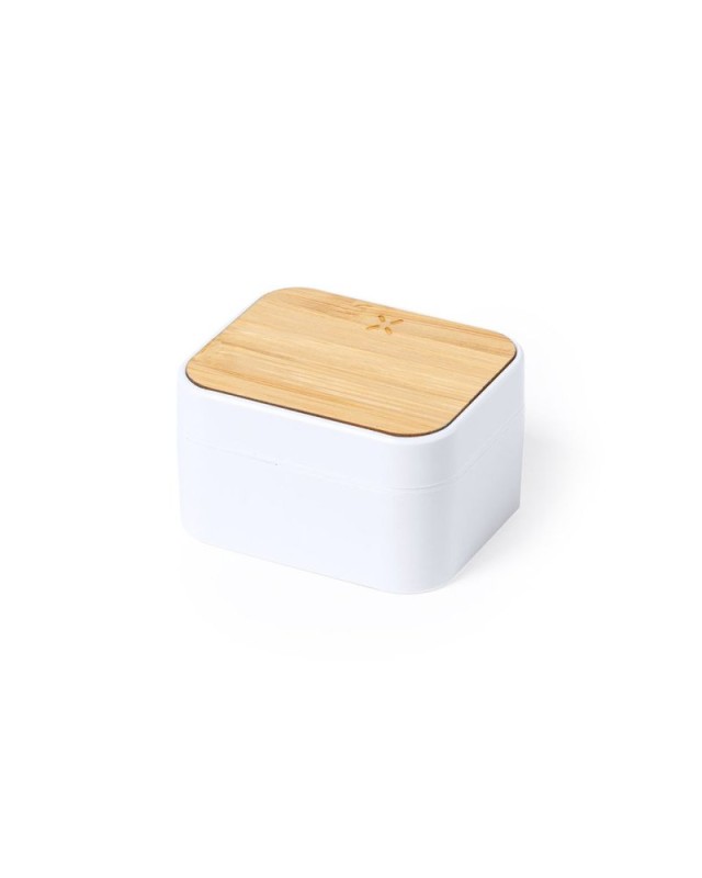 Auricolari della linea natura. Realizzati in ABS resistente con dettagli in bambù negli auricolari e nella base. Connessione Bluetooth 5.0 e funzione vivavoce, con pulsante di controllo a sfioramento sullauricolare. Caricatore wireless da 10W integrato nel coperchio in bambù della base e ricaricabile via USB, con cavo di tipo C incluso. Presentato in una scatola individuale di eco-design in cartone kraft. - Lunghezza: 5.3 cm - Larghezza: 3 cm - Peso: 48 gr
