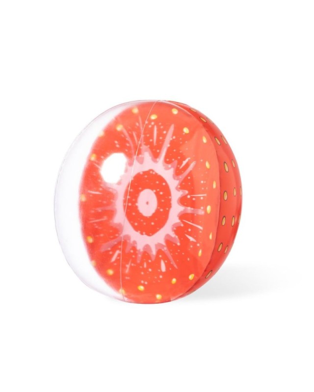 Pallone da spiaggia gonfiabile con disegni di frutta. Realizzato in PVC resistente e per metà trasparente. - Peso: 60 gr