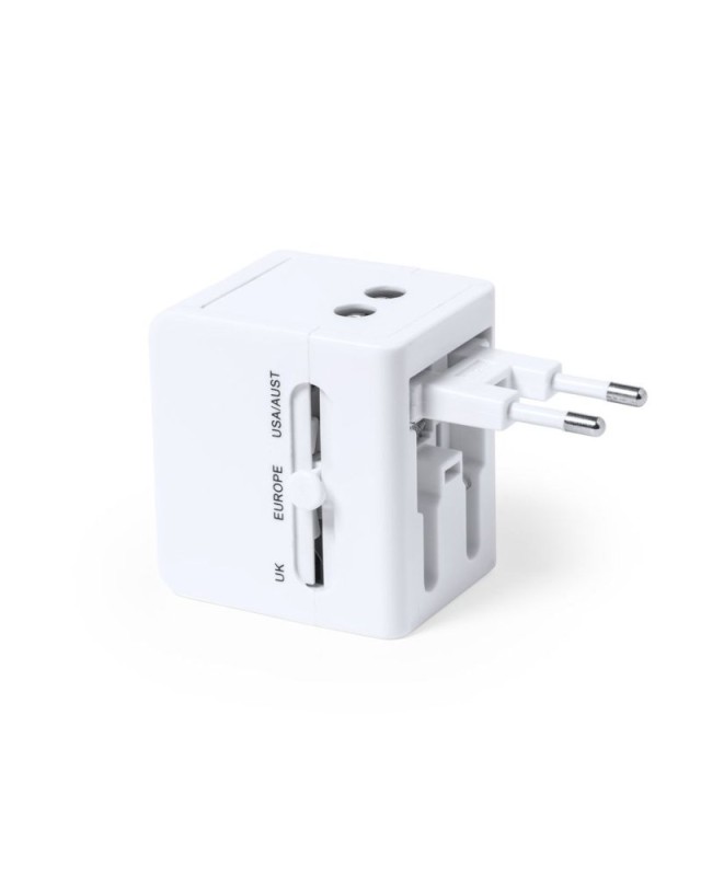Adattatore a spina retrattile, design ultra compatto ed elegante finitura bianca. Con uscita USB QC 3.0 (Quick Charge) da 18W e uscita Type-C da 20W, con tecnologia di ricarica rapida PD (Power Delivery), compatibile con una moltitudine di dispositivi.Particolarmente adatto ai viaggiatori, include adattatori multi-regione per USA, Europa, Asia, Regno Unito e Australia. Con custodia in pelle scamosciata e presentato in una scatola kraft individuale. - Lunghezza: 5 cm - Larghezza: 5.7 cm - Peso: 100 gr