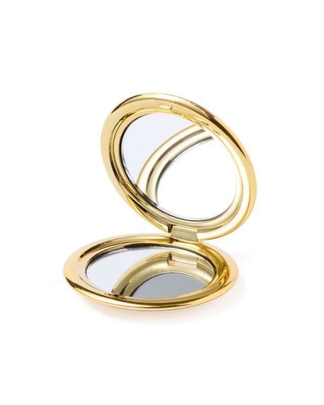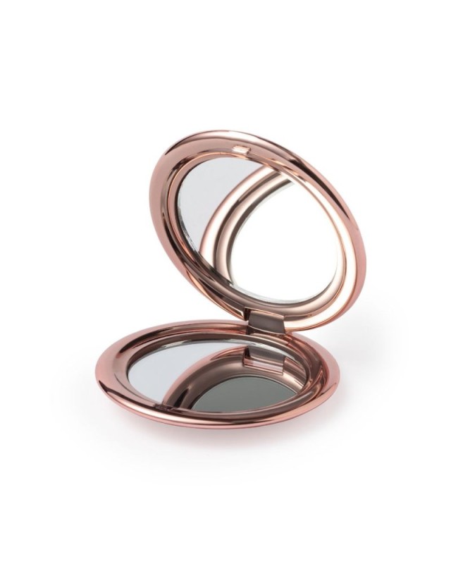 Specchio pieghevole con elegante finitura metallica. Con due specchi interni (ingrandimento 1X e 2X), disponibili in oro, argento e oro rosa. - Diametro: 6.4 cm - Peso: 36 gr