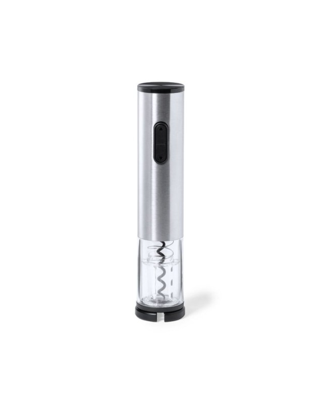 Cavatappi elettrico in acciaio inossidabile e ABS resistente, con tagliacapsule incluso. Confezionato singolarmente in una scatola di design, con manuale di istruzioni in inglese e spagnolo. Alimentazione a batteria (4xAA non incluse). - Diametro: 4.5 cm - Peso: 300 gr
