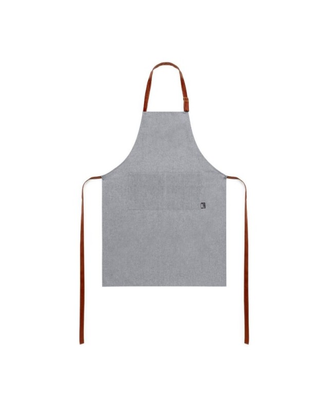 Grembiule della linea natura in materiale RPET, realizzato con plastica riciclata, per promuovere il riutilizzo dei rifiuti plastici e contribuire alla sostenibilità del pianeta. Tagliato sotto il ginocchio, con cinghie di regolazione in resistente similpelle e ampia tasca frontale. Etichetta RPET sulla tasca. - Lunghezza: 70 cm - Peso: 190 gr