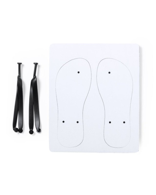 Ciabatte infradito con suola personalizzabile al 100% e appositamente progettata per la stampa in sublimazione. Con suola in EVA resistente, strisce in PVC nero e disponibile in due taglie: 36-38 e 42-44. Il set è composto da un piano in EVA sagomato per la personalizzazione. - Peso: 85 gr
