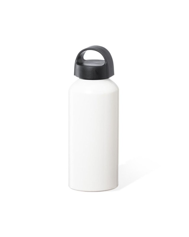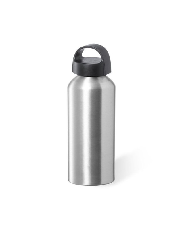 Borraccia da 500 ml, in alluminio con finitura lucida. Tappo a vite nero con manico integrato, senza BPA. Disponibile in unampia gamma di colori e confezionata singolarmente in una scatola dal desing kraft.Manuale di istruzioni disponibile in spagnolo e inglese. - Diametro: 6.6 cm - Peso: 80 gr