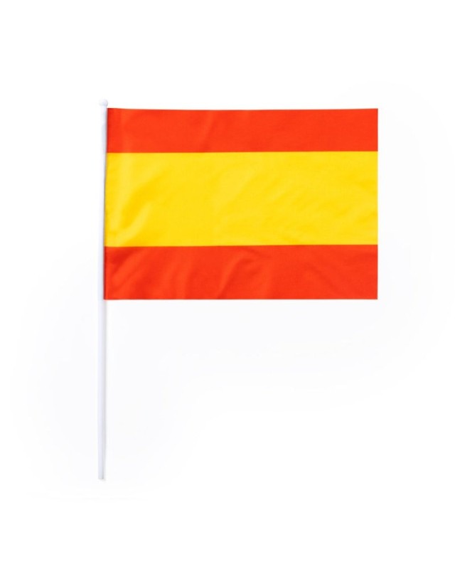Bandierina della Spagna di dimensioni 29,5x20 cm. Realizzata in poliestere resistente, con unasta bianca di 40 cm e rifinita con una pallina in cima. - Lunghezza: 29.5 cm - Peso: 5 gr