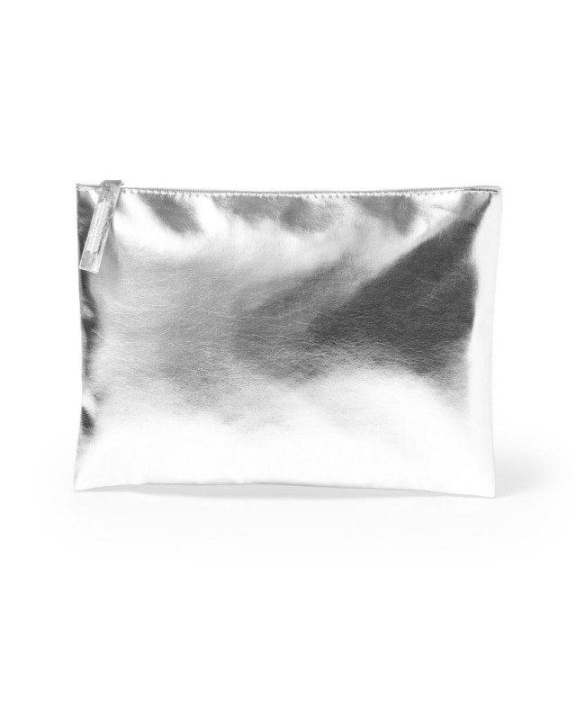 Beauty case in pelle verniciata con elegante finitura metallizzata. Con chiusura a zip e manico coordinato disponibile in oro, argento e oro rosa. - Lunghezza: 21 cm - Peso: 25 gr