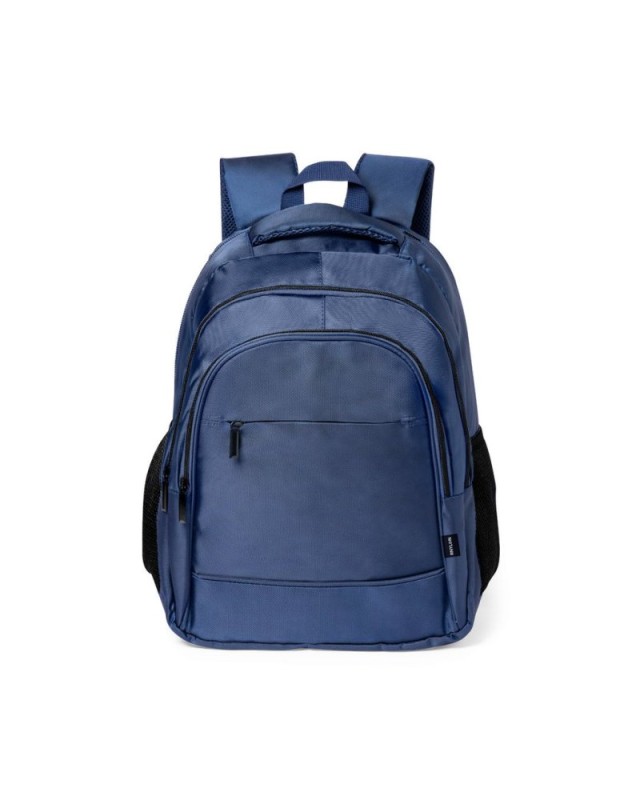 Zaino di alta qualità realizzato in RNYLON 420D. Scomparto principale con chiusura a zip in tinta e doppio tiretto. Include 3 tasche esterne con cerniera e 2 tasche laterali in rete. Imbottitura su maniglia, schienale e spallacci, che sono anche regolabili. Interno con scomparto imbottito per laptop fino a 15" e supporto posteriore per trolley. Disponibile in una vasta gamma di colori, con etichetta riciclata allesterno.Il materiale RNYLON è realizzato con plastica riciclata per incoraggiare il riutilizzo dei rifiuti plastici e contribuire alla sostenibilità del pianeta. - Lunghezza: 32.5 cm - Larghezza: 25 cm - Peso: 800 gr