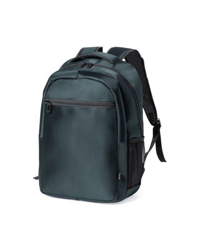Zaino di alta qualità realizzato in RNYLON 420D. Scomparto principale con chiusura a zip in tinta e doppio tiretto. Include una tasca esterna con zip e 2 tasche laterali in rete. Imbottitura su manico, schienale e spallacci, questi ultimi regolabili. Interno con scomparto imbottito per laptop fino a 15" e supporto posteriore per trolley. Disponibile in una varia gamma di colori, con logo riciclato sulletichetta esterna.Il materiale RNYLON è realizzato con plastica riciclata per incoraggiare il riutilizzo dei rifiuti plastici e contribuire alla sostenibilità del pianeta. - Lunghezza: 32 cm - Larghezza: 15 cm - Peso: 440 gr