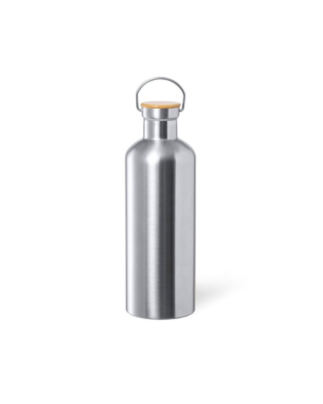 Borraccia termica Jumbo da 1,5 litri, realizzata in acciaio inox a doppia parete con finitura opaca. Include il tappo a vite originale in acciaio inox con dettagli in bambù e manico integrato. Priva di BPA e presentata in una scatola kraft individuale. - Diametro: 10.1 cm - Peso: 600 gr