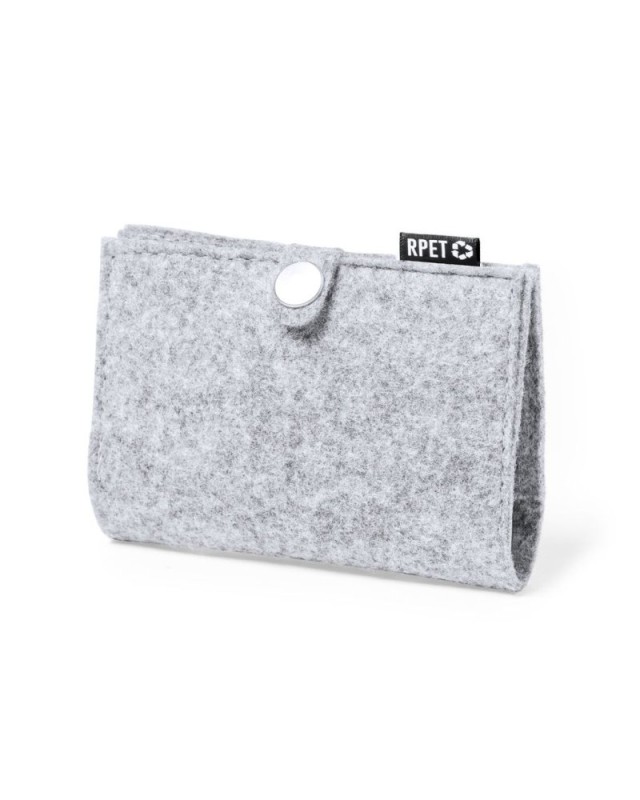 Elegante portacarte realizzato in feltro RPET. Scomparto principale con chiusura a scatto in metallo e 6 scomparti separati. Con logo feltro RPET sulletichetta esterna. Il feltro RPET è il risultato della combinazione del processo di riciclo delle materie plastiche con la tecnica millenaria di produzione del feltro, che dà vita a un materiale di eco-tendenza che, oltre a essere di origine riciclata, diventa anche riciclabile. - Lunghezza: 11 cm - Larghezza: 1.5 cm - Peso: 22 gr