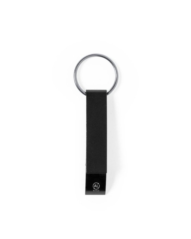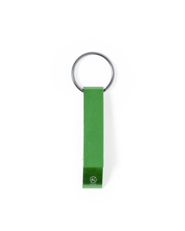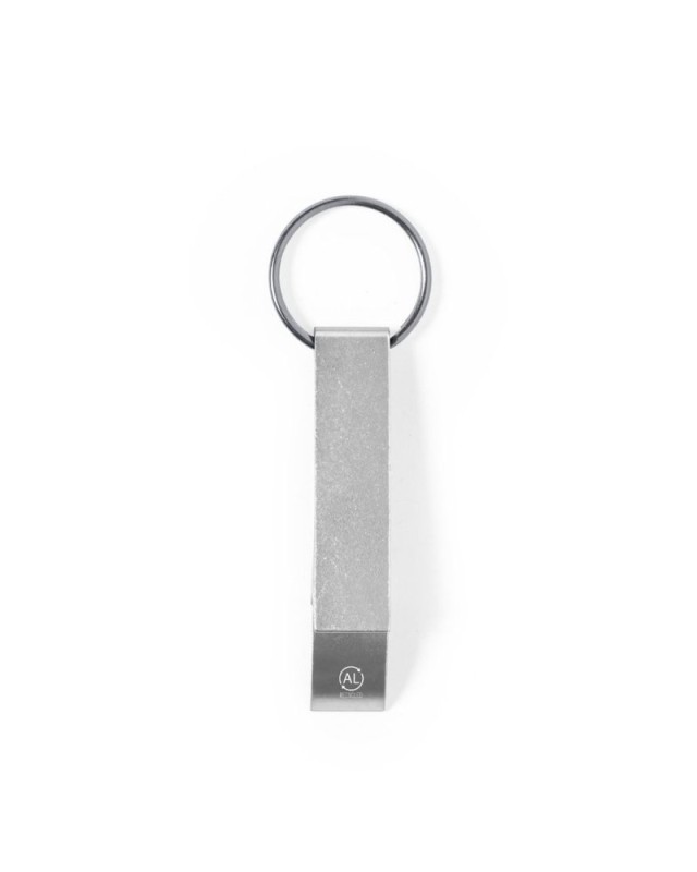 Portachiavi apribottiglia in alluminio riciclato. Con accessorio di apertura per barattoli e progettato appositamente per la stampa laser. Disponibile in unampia gamma di colori metallizzati, con logo alluminio riciclato. Lalluminio riciclato è un materiale con possibilità di riciclaggio quasi infinite, senza per questo perdere le sue proprietà originali e consumando meno energia in questo processo. - Lunghezza: 1.1 cm - Larghezza: 1.5 cm - Peso: 8 gr
