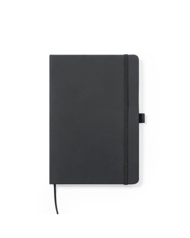 Block notes in finta pelle con elegante finitura nera. Con copertina rigida, segnalibro ed elastico coordinato. Allinterno 100 fogli a riga singola e portapenne (penna non inclusa). - Lunghezza: 14.7 cm - Larghezza: 1.5 cm - Peso: 290 gr
