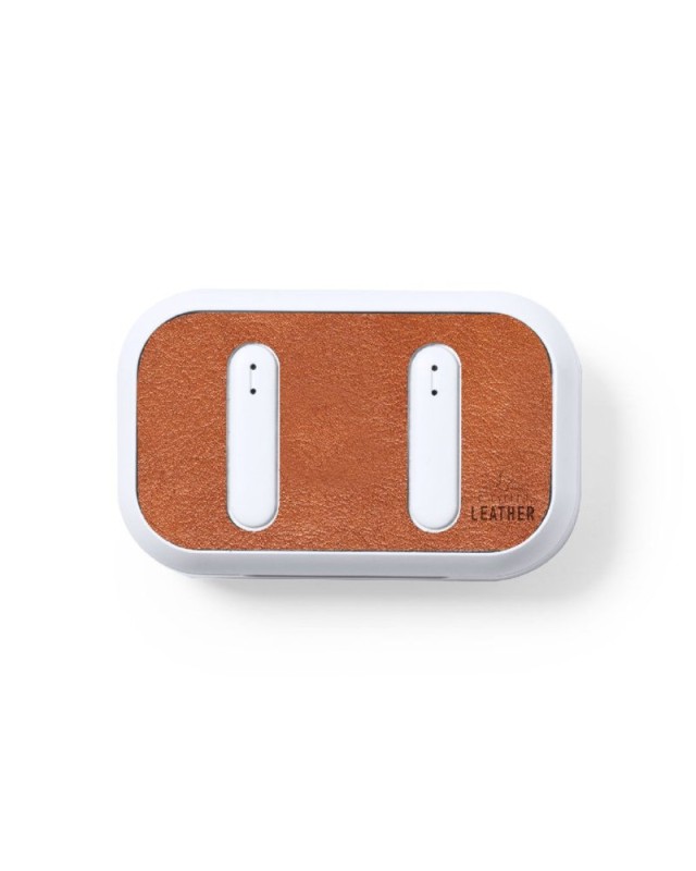 Cuffie in-ear Bluetooth, realizzate in RABS in un elegante colore bianco, con il coperchio della base di ricarica rivestito in pelle riciclata.Connessione Bluetooth 5.1, funzione vivavoce e batteria da 30 mAh. Design ergonomico, con pulsante di controllo a sfioramento integrato su ciascun auricolare e luce di stato di ricarica a LED. Base di ricarica abbinata con batteria da 300 mAh. Include un cavo di ricarica di tipo C e un manuale di istruzioni in inglese e spagnolo. Confezionate in una scatola kraft di design.Il materiale RABS o ABS riciclato e la pelle riciclata provengono dal riciclo di articoli giunti al termine del loro ciclo di vita. I materiali riciclati utilizzati hanno la certificazione RCS, che ne garantisce lorigine riciclata. - Lunghezza: 6.2 cm - Larghezza: 3.9 cm - Peso: 34 gr