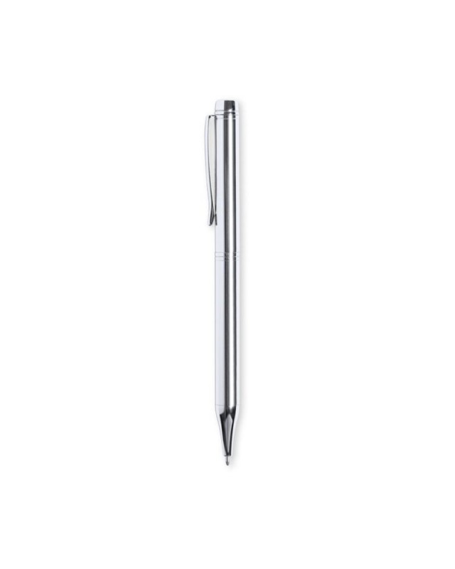 Penna Antonio Miró in metallo lucido, con logo del marchio sul fusto e disponibile in unampia gamma di colori. Con meccanismo a rotazione e inchiostro blu. Confezionata in un elegante e resistente cofanetto nero con logo Antonio Miró e astuccio coordinato. - Diametro: 1 cm - Peso: 28 gr