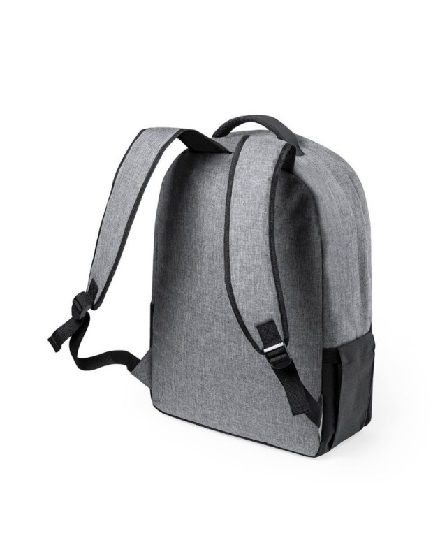 Zaino in poliestere 600D RPET, realizzato in plastica riciclata per favorire il riutilizzo dei rifiuti plastici e contribuire alla sostenibilità del pianeta. In unelegante finitura bicolore, include unetichetta esterna con il logo RPET. Tasca principale con scomparti imbottiti per notebook fino a 15 pollici e tablet fino a 10 pollici. Schienale e spallacci imbottiti. - Lunghezza: 31 cm - Larghezza: 13 cm - Peso: 535 gr