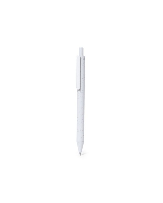 Penna con meccanismo a pulsante, realizzata in ABS riciclato. Con clip dai colori vivaci e fusto liscio bianco pieno. Etichetta ABS riciclato sulla parte superiore della penna. In inchiostro blu. - Diametro: 1 cm - Peso: 7.5 gr