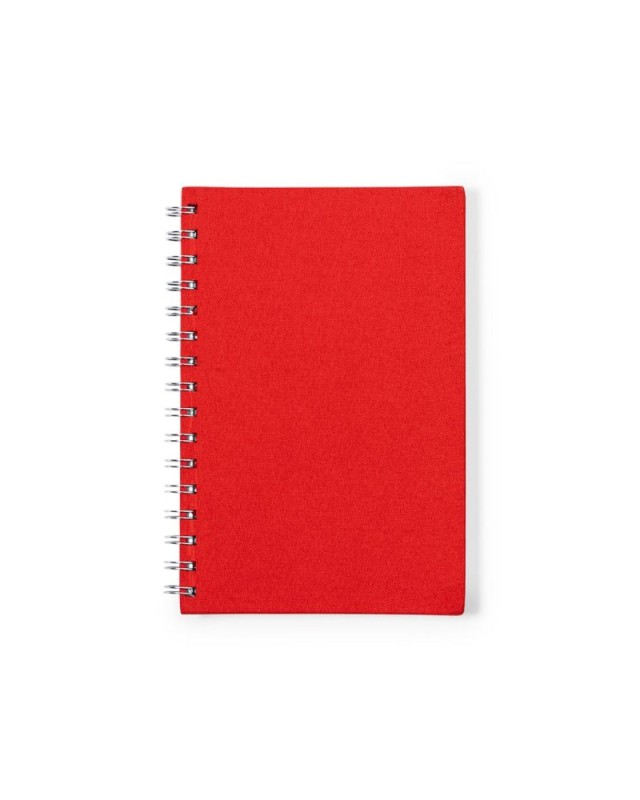 Quaderno ad anelli A5 con copertina rigida in resistente materiale RPET 300D. Allinterno 100 fogli a una riga riciclati al 100%. Include un badge RPET sul retro della copertina. Confezionato in una busta individuale riciclata.Il materiale RPET è ottenuto da plastica riciclata, promuovendo così il riutilizzo dei rifiuti plastici e contribuendo alla sostenibilità del pianeta. - Lunghezza: 15 cm - Larghezza: 1.5 cm - Peso: 290 gr