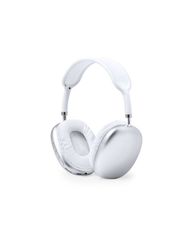 Originali auricolari con connessione Bluetooth 5.0, design allavanguardia e cuscinetti quadrati, in combinazione di colori bianco e argento. Pannello di controllo integrato nelle cuffie, funzione vivavoce e slot per schede microSD. Ingresso di linea tramite connessione jack da 3,5 mm, cavo da 1 m incluso. Ricaricabile tramite cavo USB (30 cm incluso) e con batteria da 150 mAh. Presentate in una scatola kraft individuale con carta protettiva. - Lunghezza: 20 cm - Larghezza: 8 cm - Peso: 140 gr
