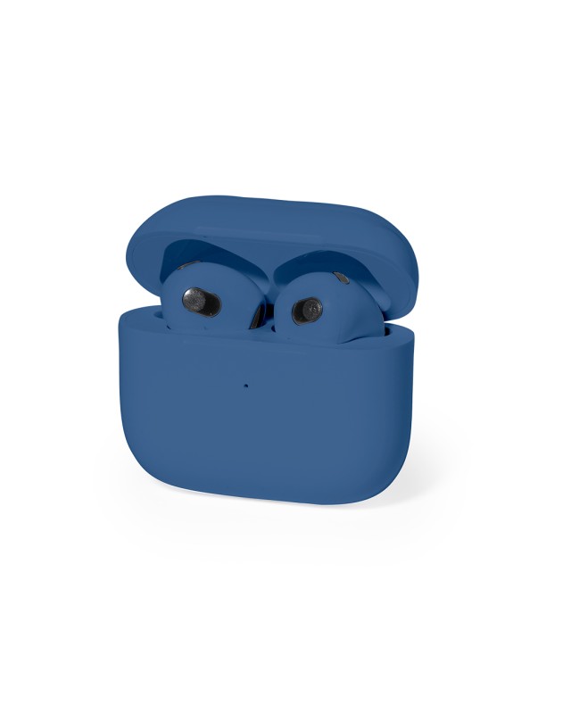 Cuffie in-ear con connessione Bluetooth 5.3 e funzione vivavoce. Design ergonomico, con pulsante di controllo a sfioramento integrato nellauricolare e base di ricarica abbinata. Batteria incorporata da 300 mAh e confezione individuale con design kraft. Manuale di istruzioni in inglese e spagnolo. - Lunghezza: 5.4 cm - Larghezza: 2.1 cm - Peso: 38 gr