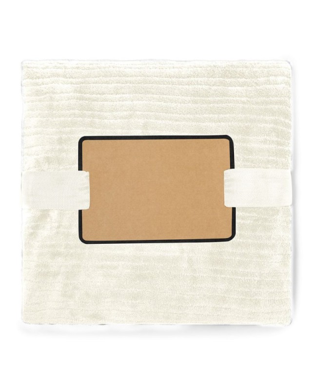 Coperta realizzata in poliestere da 240 g/m2, molto confortevole, morbida e calda al tatto. Disponibile in vari colori e presentata su nastro con pellicola per una facile stampa, allinterno di un sacchetto riciclato individuale. - Lunghezza: 150 cm - Peso: 540 gr