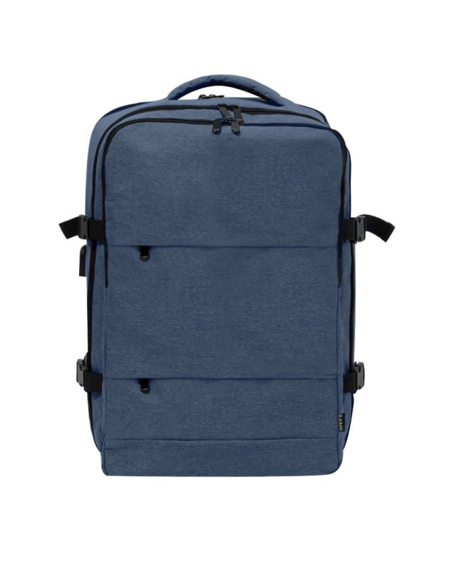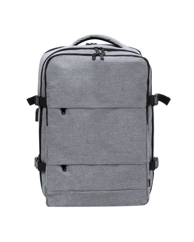 Zaino multifunzionale in RPET 300D. Realizzato in poliestere riciclato e resistente allacqua, presenta uneccellente traspirabilità nella zona della schiena, facilitando la dispersione del calore grazie alle cinghie imbottite e allo schienale imbottito. Gli ampi spallacci sono progettati per alleviare la pressione sulle spalle, consentendo di indossare comodamente lo zaino per lunghi periodi di tempo.Perfetto per ogni situazione grazie ai molteplici scomparti: 2 tasche anteriori. 3 ampi scomparti centrali, di cui uno grande, una grande tasca centrale per riporre vestiti e/o accessori con un organizzatore allinterno e una terza tasca imbottita, perfetta per trasportare un computer portatile fino a 17,3 pollici. Dispone inoltre di 3 scomparti speciali, una tasca laterale perfetta per un accesso rapido, una tasca per le scarpe sul fondo con occhielli di ventilazione e una tasca antifurto sul retro, oltre a un cavo USB. Perfetto per i viaggi o per luso quotidiano, con cinghie regolabili per adattarsi a tutti gli stili di vita. Disponibile in nero e grigio, con logo RPET incluso. Confezionata singolarmente in un sacchetto riciclato.Il materiale RPET è realizzato con plastica riciclata per incoraggiare il riutilizzo dei rifiuti plastici e contribuire alla sostenibilità del pianeta. - Lunghezza: 33 cm - Larghezza: 20 cm - Peso: 890 gr