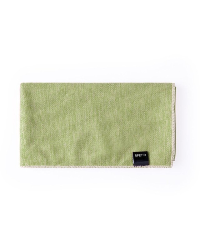 Asciugamano assorbente in RPET 160g/m2. Formato 50x100 cm e presentato in un sacchetto individuale in rete RPET, con retro liscio. Disponibile in unampia gamma di colori, con logo RPET sulletichetta.Il materiale RPET è realizzato con plastica riciclata, per promuovere il riutilizzo dei rifiuti plastici e contribuire alla sostenibilità del pianeta. - Lunghezza: 12 cm - Larghezza: 6 cm - Peso: 90 gr