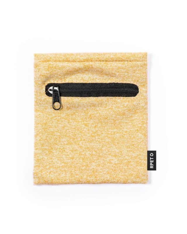 Pratico polsino in morbido poliestere RPET. Accessorio perfetto per riporre piccoli oggetti grazie alla tasca nera con zip. Disponibile in unampia gamma di colori, con la caratteristica etichetta RPET.Il materiale RPET è realizzato con plastica riciclata, promuovendo così il riutilizzo dei rifiuti plastici e contribuendo alla sostenibilità del pianeta. - Lunghezza: 10.5 cm - Peso: 10.5 gr