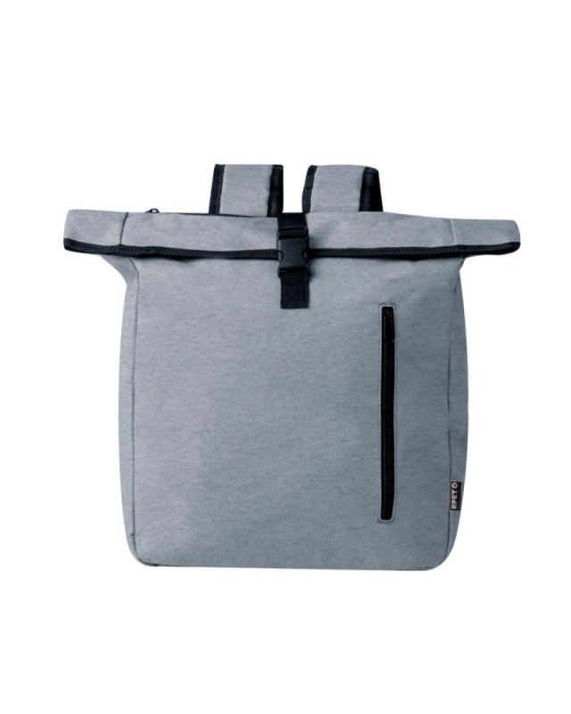 Zaino da bicicletta realizzato in resistente 600D RPET. Versatile e con chiusura a fibbia, include una pratica tasca frontale con zip. Sul retro è dotato di specifici attacchi universali per biciclette, che garantiscono maggiore comfort e sicurezza durante gli spostamenti. Dispone inoltre di spallacci imbottiti e regolabili per un trasporto più confortevole quando si stacca dalla bicicletta. Etichetta esterna con logo RPET.Il materiale RPET è realizzato con plastica riciclata per incoraggiare il riutilizzo dei rifiuti plastici e contribuire alla sostenibilità del pianeta. - Lunghezza: 32 cm - Larghezza: 12 cm - Peso: 430 gr