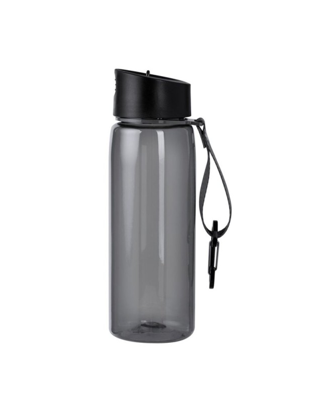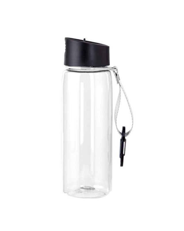 Borraccia da 800 ml in RPET resistente con finitura del corpo trasparente in vari colori. Tappo a vite nero, con dispenser e beccuccio pieghevole. Con cinghia di trasporto abbinata e moschettone in metallo per un comodo trasporto. Disponibile in unampia gamma di colori.Il materiale RPET è realizzato con plastica riciclata per incoraggiare il riutilizzo dei rifiuti plastici e contribuire alla sostenibilità del pianeta. - Diametro: 7.5 cm - Peso: 150 gr